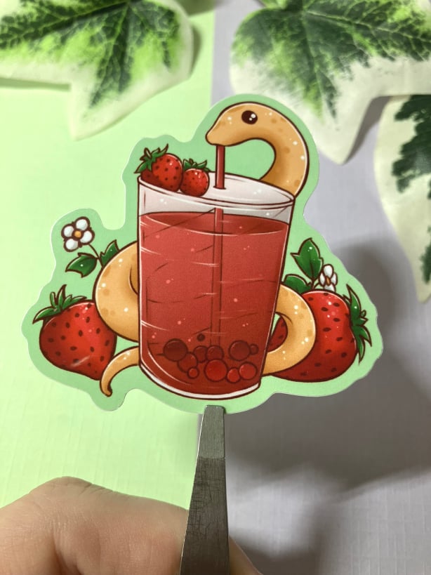 Cute Strawberry Snake Waterproof Vinyl Sticker